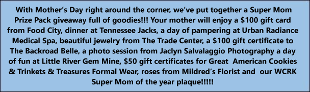 Your Mother Could Be Our Super Mom of The Year! Just Tell Us Why in 25 Words or Less Why She Should Win Our Special Prize Package Giveaway Friday Morning, May 8th at 7:15!!!!